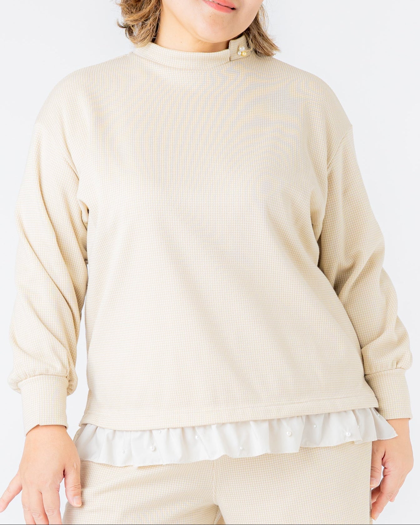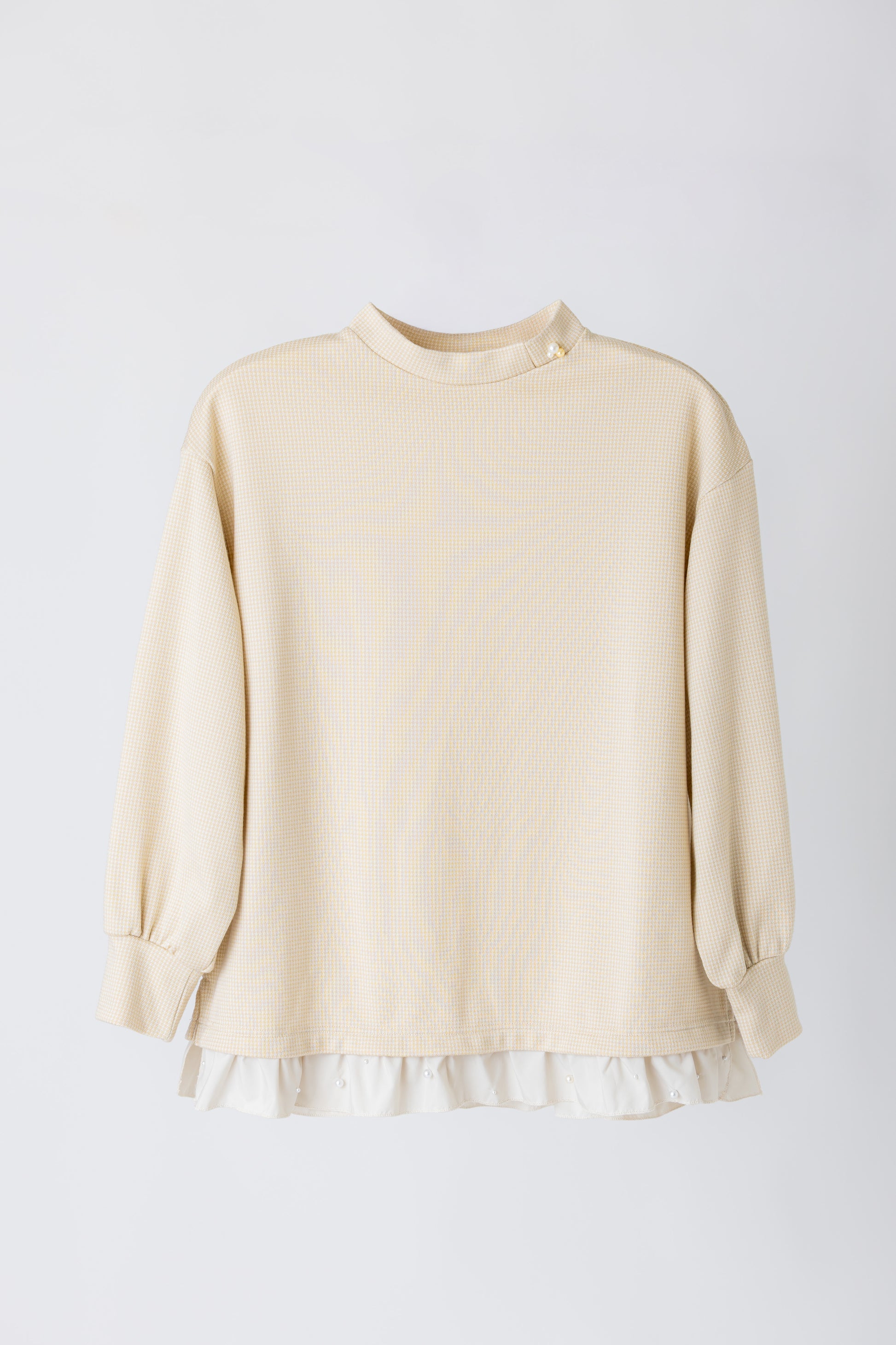 レディース 千鳥ジャガードパールフレア付きプルオーバー